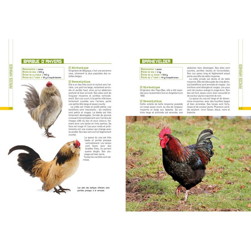Tout connaître sur les poules : anatomie et physiologie, catalogue des races tout illustré, les maladies les plus courantes.