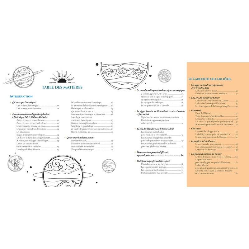 Le petit cahier pour tout savoir sur son signe astrologique : traits de person-nalité, caractéristiques générales, planètes d'influence, élément correspon-dant, relation avec le travail, l'amour, la santé, les défauts et les qualités, les affinités avec d'autres signes, etc.