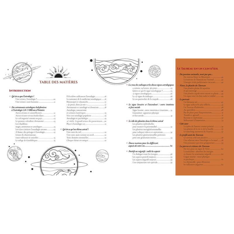 Le petit cahier pour tout savoir sur son signe astrologique : traits de person-nalité, caractéristiques générales, planètes d'influence, élément correspon-dant, relation avec le travail, l'amour, la santé, les défauts et les qualités, les affinités avec d'autres signes, etc.