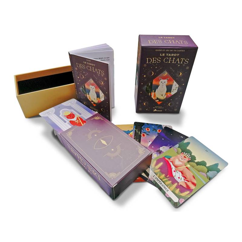 Un magnifique coffret de tarot sur le thème des chats, superbement illustré et disposant d'une belle qualité de fabrication.