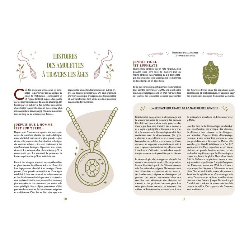 Utilisées pour éloigner les mauvais esprits et apporter une protection, elles ont été présentes dans presque toutes les civilisations. Le livre guide le lecteur à travers ces époques et dévoile comment les amulettes ont évolué au fil du temps.
