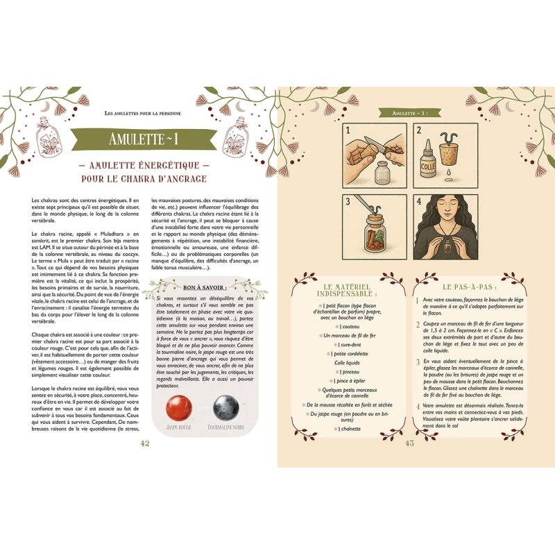 Le livre propose des pas-à-pas pour créer ses propres amulettes porte-bonheur. Grâce à des instructions simples et détaillées, le lecteur apprendra à confectionner des amulettes personnalisées, alliant tradition et créativité.