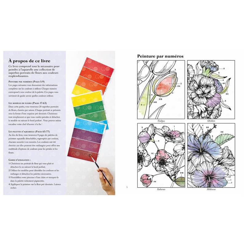 20 esquisses de fleurs prêtes à peindre, avec peintures et pinceau inclus !