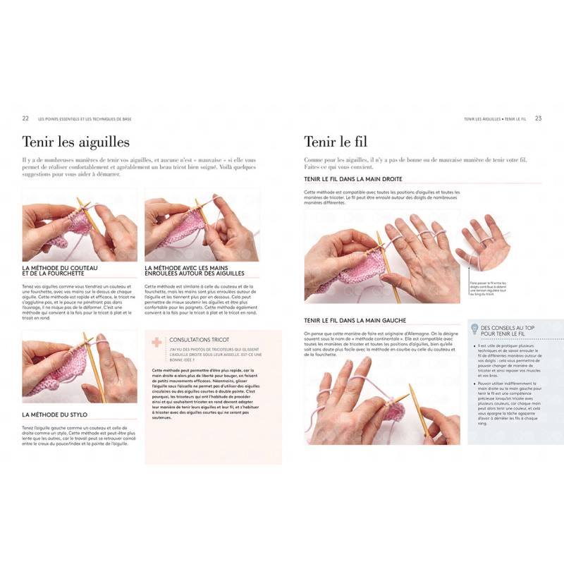 Toutes les bases pour commencer le tricot : matériel, choix du fil, comment lire les modèles, tenir les aiguilles, les nuds et les mailles, etc.