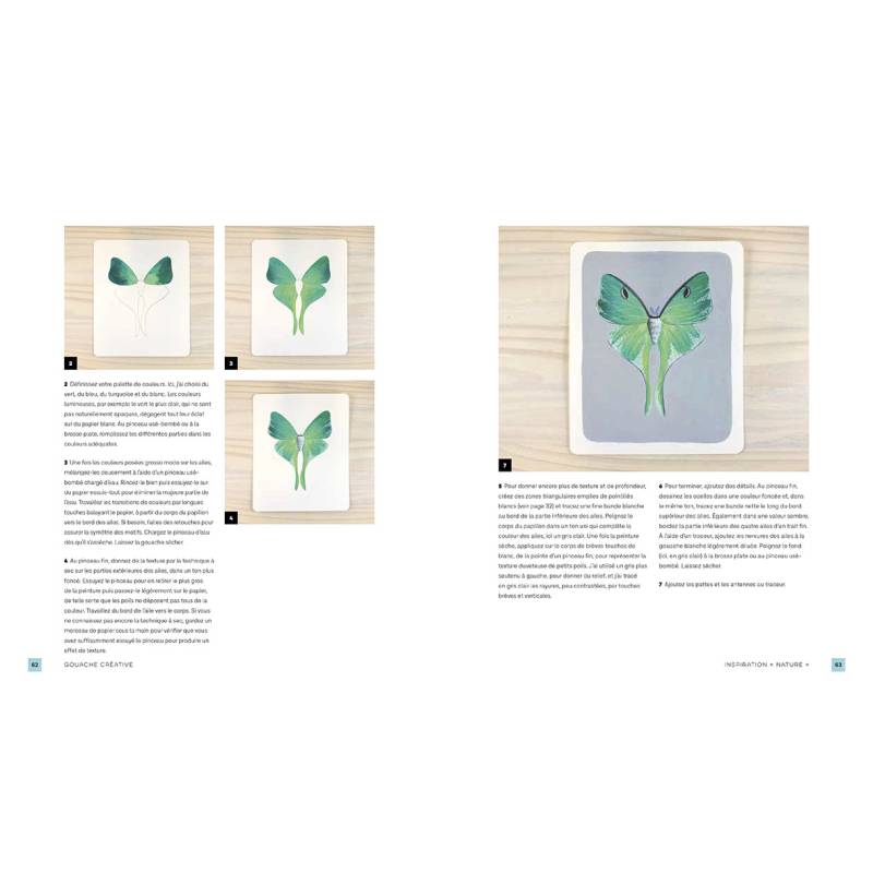 · Des pas-à-pas pour peindre de jolis motifs (fleurs, papillons, paysages, lettrages) et pour donner vie à des projets créatifs (bullet journal, papier cadeau, triptyque...).