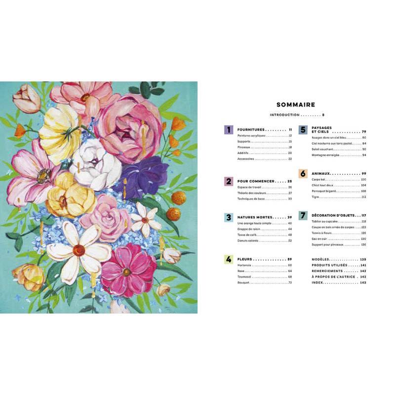 · Des instructions claires et pas-à-pas pour peindre une grande variété de sujets : fleurs, natures mortes, paysages, animaux et ciels.