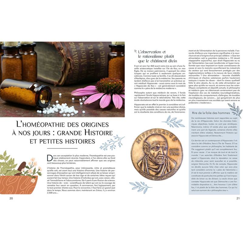- Le grand guide de l'homéopathie pour prévenir et soulager les maux du quotidien en identifiant les symptômes auquel vous êtes sujet et en vous accompagnant sur les prescriptions adéquates.