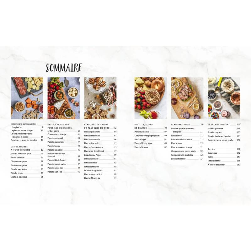 Plus que des simples planches de charcuterie pour l'apéro, on trouve dans ce livre des planches pour toutes les occasions, de l'entrée au dessert, pour des moments gourmands et mémorables.