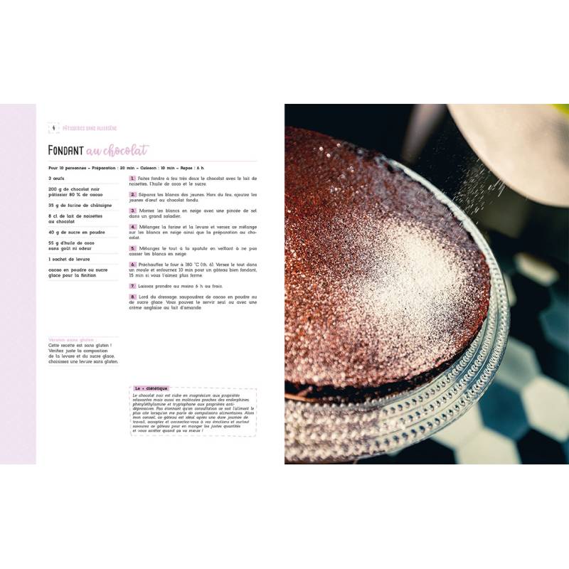 50 recettes de gâteaux et de pâtisserie sans les allergènes les plus communs : lait, soja et gluten.