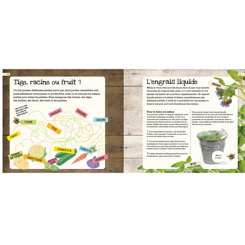 Une présentation ludique, toute en illustration, avec des jeux sur l'univers du jardinage et des fiches détachables pour garder les informations essentielles à portée de main.