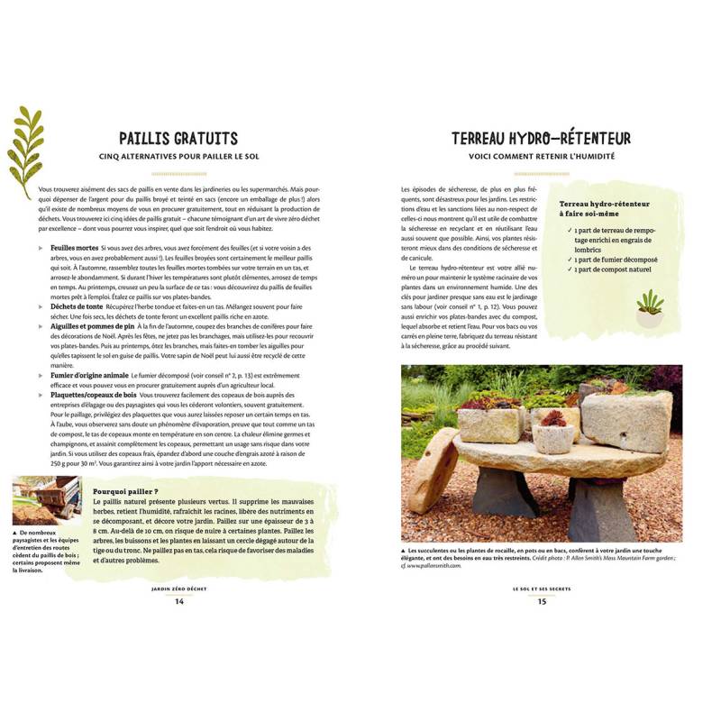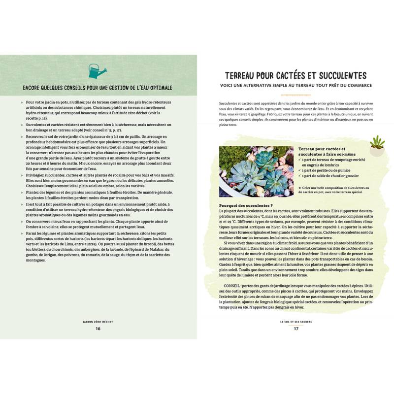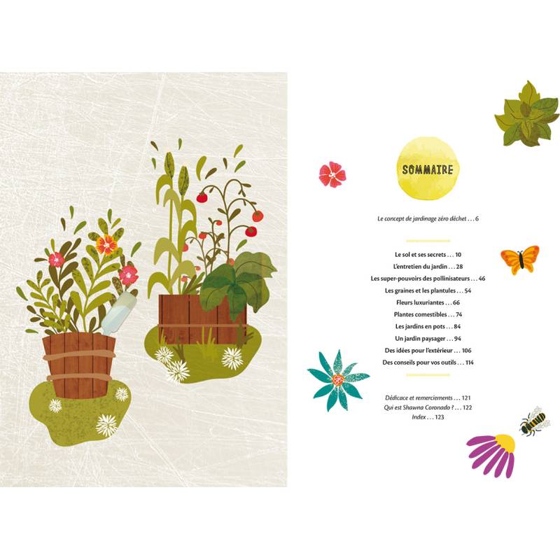 Découvrez notamment comment faire soi-même son terreau pour réduire les emballages plastiques, faire repousser des légumes, composter ses déchets, donner une nouvelle vie à de vieux outils, réutiliser toutes sortes de matériaux pour créer des lits à plantation, des germoirs, des cloches, mais aussi récupérer l'eau de pluie pour arroser, etc.