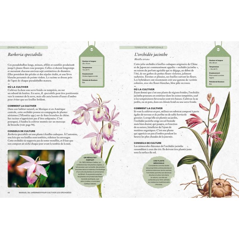 Plus de 60 variétés décrites : emplacement, conseils de culture, hauteur, température, période de floraison, etc.