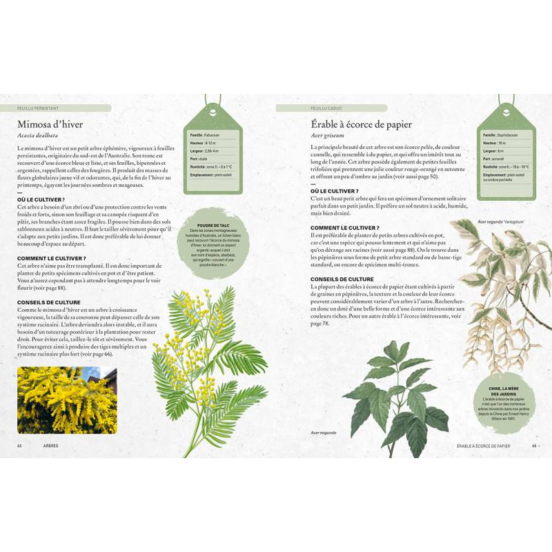 Plus de 40 variétés décrites : emplacement, sol, rusticité et climat, exposition, conseils de culture et plantation, entretien et taille, cultivars.