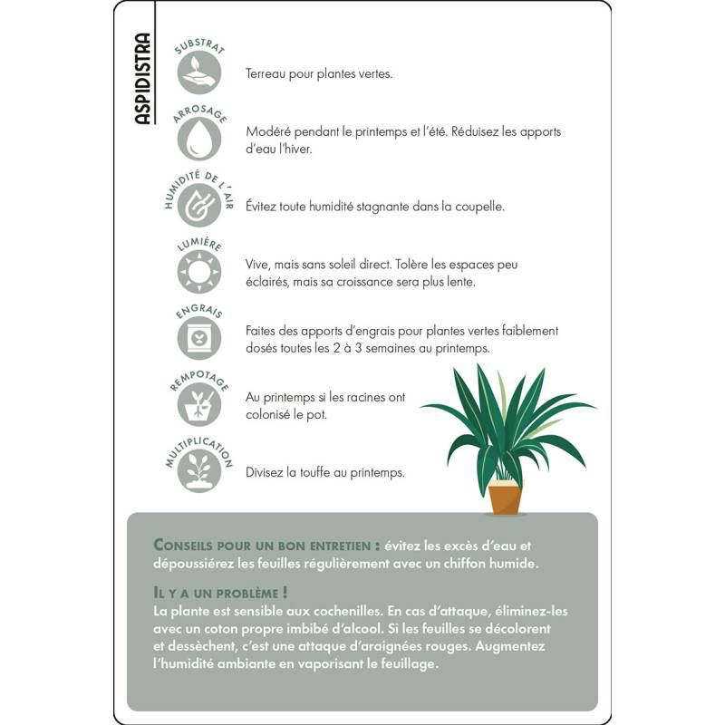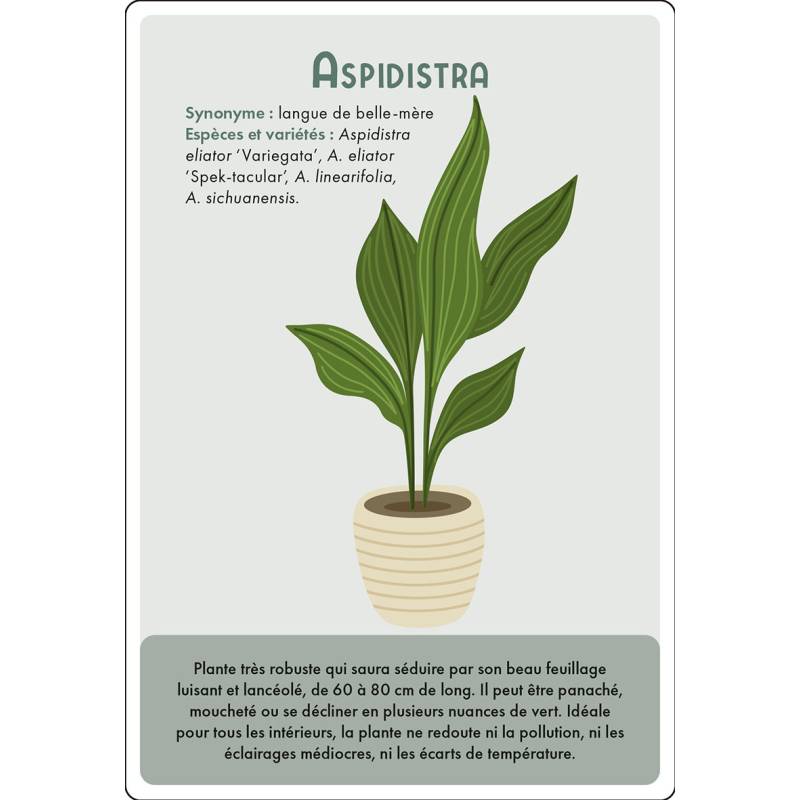 Chaque carte livre des conseils clairs et accessibles pour comprendre les besoins réels de ses plantes : lumière, arrosage, engrais, rempotage
