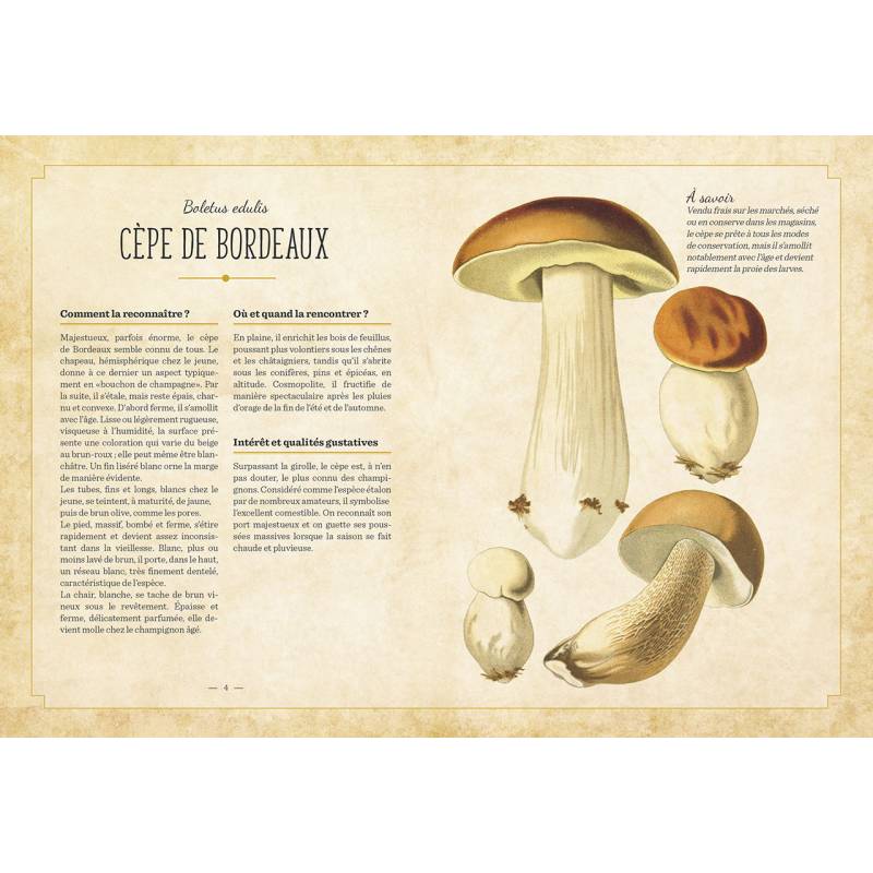 Plus de 100 champignons comestibles et toxiques d?crits : toutes les caract?ristiques pour les identifier sont indiqu?es, mais ?galement o? et quand les r?colter, comment les pr?parer, etc.