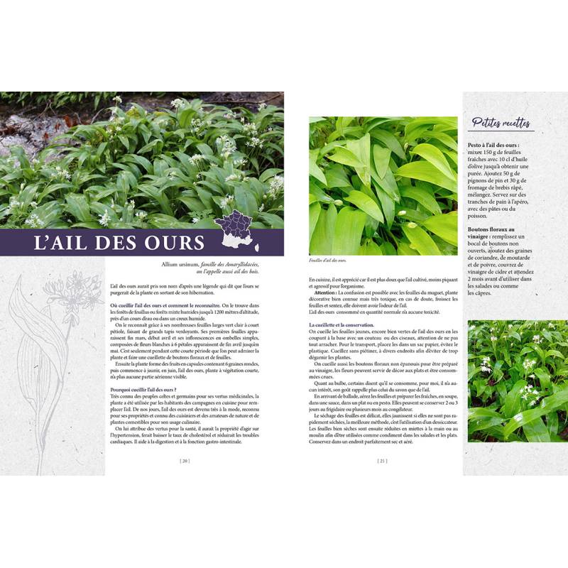 - Identifiez et récoltez une grande variété de plantes sauvages comme l'ail des ours au printemps, la myrtille en été, les cèpes en automne, ou encore le gui en hiver.